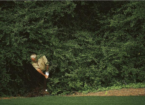 阿诺德-帕尔默树林里救球,他被尊称为“高尔夫国王”。