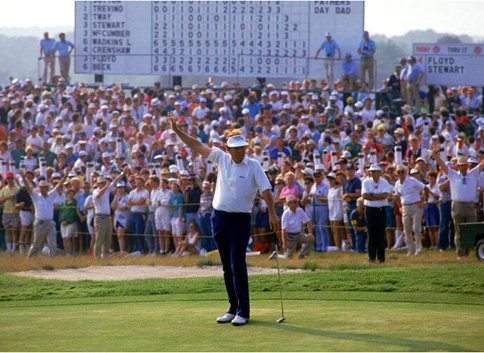 “黑色骑士”赢得过九次大满贯冠军。“他的短杆世界第一,还有他的敬业精神,没人能比。”百佳教练 Bill Moretti 说:“在他职业生涯高峰时期,他可以媲美尼克劳斯,帕尔默等传奇,尽管他的开球距离不及这两位。”