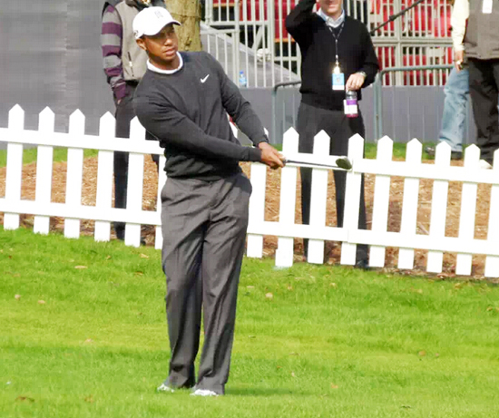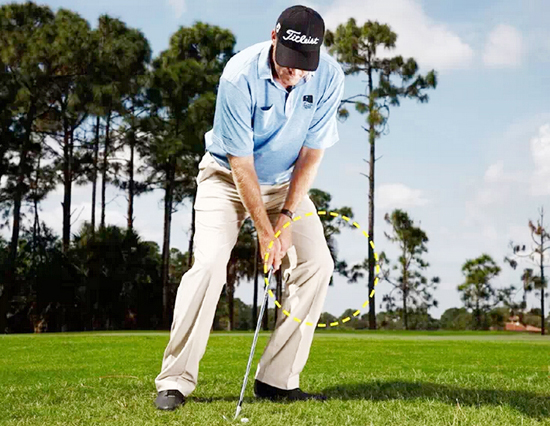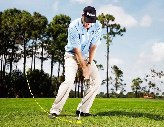 3. 送杆时继续保持重心在左腿上。这能最小化长草对杆头的阻碍,并实现干脆的触球.