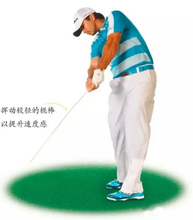 没有人可以在挥杆速度很慢的情况下将球打远。我看很多中高差点的球员,在下场前喜欢双手同时挥动两根铁杆,或者采用很重的辅助训练工具进行练习,这样还没有开始下场,挥杆速度已经变慢了很多。当世界级的短跑选手想在赛前让自己找到速度感或者爆发力,他们会采用下坡跑的方式。