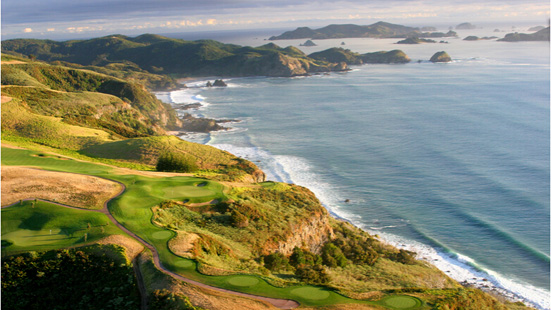 如果你想要在能欣赏到太平洋及其岛屿 180 度开阔全景的地方开球,没有比贝壳杉悬崖高尔夫球场更好的地方了。球场位于北岛玛陶里湾(Matauri Bay)附近,俯瞰着岛屿湾(Bay of Islands)及其远处的壮观美景。这个 72 杆锦标赛级高尔夫球场由 David Harman设计和建造,是新西兰一流的精品高尔夫和温泉度假胜地,入选《高尔夫杂志》世界球场 80 强。