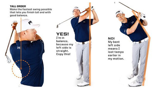 若你身体左侧是弯的,或者身体直不起来,那么就说明你在整个挥杆过程中失去了节奏和韵律。 后挥杆要慢,这将决定接下来落杆及送杆节奏的快慢。本文旨在让你更好地理解身体与球杆之间的关系,从上杆伊始直至收杆。这种全挥杆的心理感觉有助于将更多的球打上果岭。