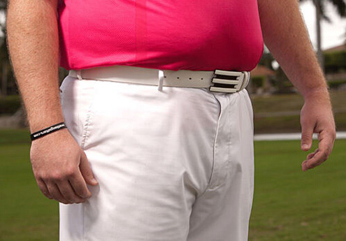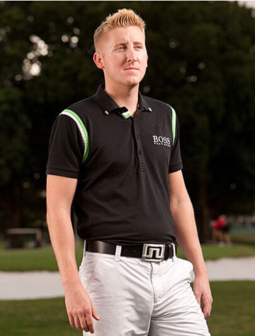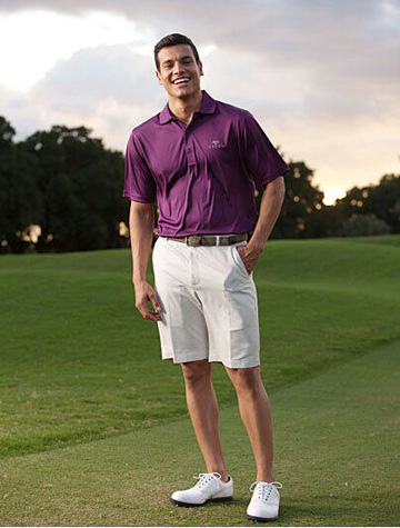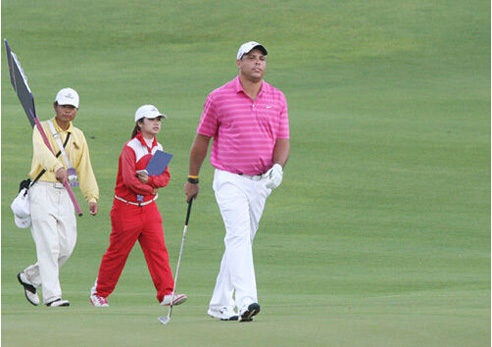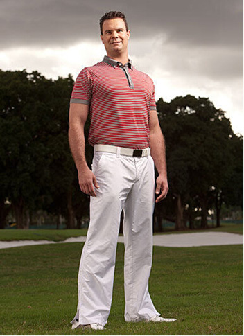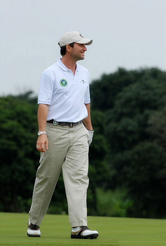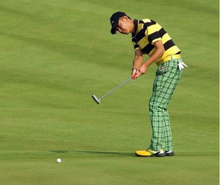 在水里各种自由自在,在高尔夫球场上也特别的帅。飞鱼菲尔普斯凭借游泳时练就的肌肉风光了一把。黑+白的颜色搭配中规中矩,反正想要不出错,选择这两个色就好了。