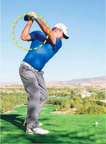 双手抬高尽可能地远离身体,这就是所谓的更宽的挥杆弧度。