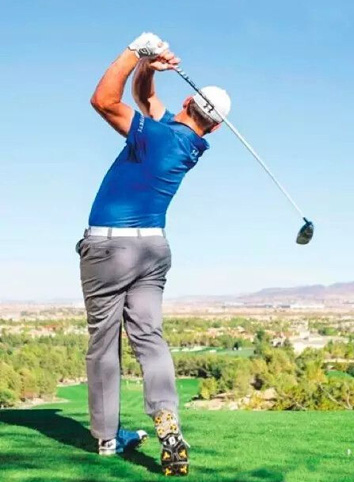 任何一个想增加击球距离的人都应该学习伍德兰德的起杆动作,依靠身体起杆而不是双手。此举让他的身体从一开始就保持在正确位置,并且引导他在下 杆的时候依靠大肌肉群,而不是双手或者手臂进行击球。这形成了一个有效的鞭打动作。大肌肉收缩,那些小肌肉(包括杆头)释放发力。其中的加速奥秘?更宽的 上杆弧度,击球阶段加速以及更加向前的送杆和随挥。