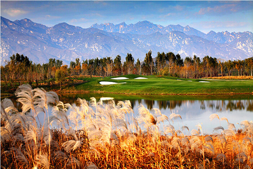 很多球友喜欢秋季的雁栖湖球场,焕发出金黄色的各种植物与远处的大山都是极好的景致