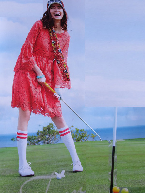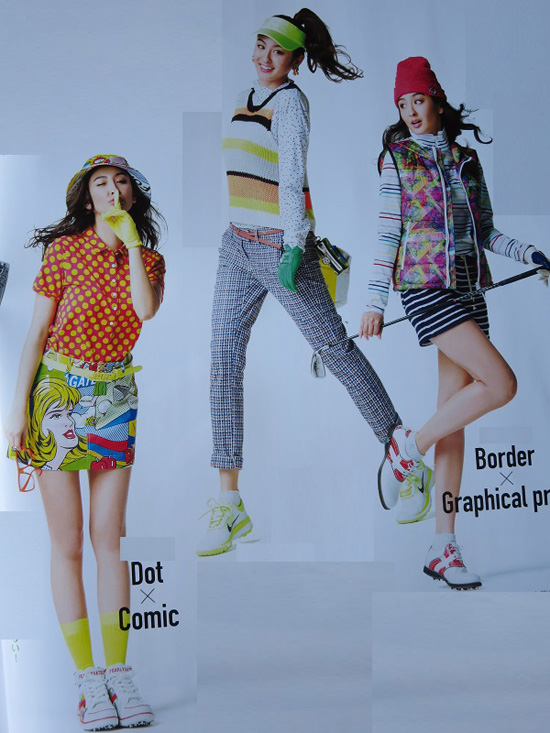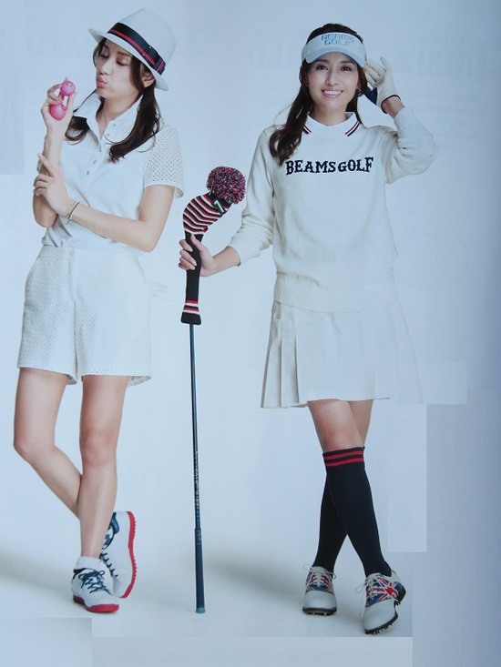 在日本高尔夫球运动中,从运动员到运动器具,从高尔夫场地到高尔夫经销商,从球场管理者到球道管理者,都绕不开色彩这个话题:色彩。从媒体到出版商都将色彩对高尔夫的重要关联、影响效果活用到了极致的地步。各种各样的彩色球包不用说。包套和球杆都是五光十色的。人们根据自己的喜好和愿望可以按照颜色来组合球杆的色彩:红色杆把+绿色杆柄+粉红色的杆头。高尔夫球運動的模特簡直