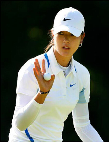 她有一位赢得过韩国最上镜小姐评选的母亲,她有一张青春靓丽的脸庞,她有一个“高坛库娃”的称号,所以,她在球场上水远有着许多吸引回头率的经 典瞬间,当然,也包括她的指定动作----打招呼。面对着狂热的拥护者,魏圣美总是习惯性地举起右手,张开纤纤细指,把小球用拇指扣在手心里,回眸一笑轻 轻示意。俗话说,手是女人的第二张脸,手的曲线和身体的曲线一样是诱人的美。或许是在母亲的耳濡目染下,魏圣美很懂得用手来传清达意,懂得在举手投足之 间,把自己的风清、魅力尽清地展示出来!的确,这样的姿势显得很Open ,很俏皮,把她落落大方却又不失天真的一面表现了出来。但是最近一年来,魏圣美的左右手腕频频遭遇伤痛,“小魔女”神奇不再,她在球场上的招牌动作到底还 能保持多久呢?