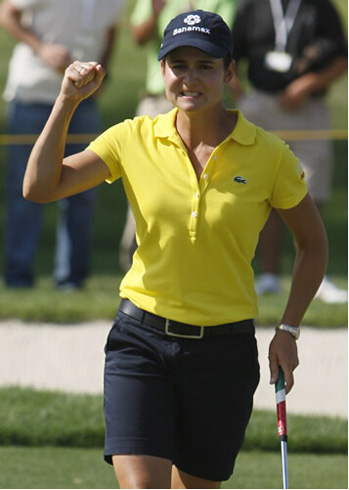 这位来自哥伦比亚的球员维勒加斯曾被选为“2006 年最性感的单身汉”,但是,这个头衔并没有他的另一个称号“蜘蛛侠”叫得响,这可全赖于他果岭上独特的看线方式。看!他右手以杆为支点,左手五指张开撑 地,两腿弯曲,身彻占地,双目直直地看着线,专注而又有趣,还很“性感”,这确实无法不让人联想到美国大片《 蜘蛛侠》 。蜘蛛侠现身球场,这可是一大不容错过的看点哦,哪泊只是让你开口晒晒牙齿。对于恋爱,他也是和蜘蛛侠一样充满着正义感和责任感,“高尔夫和约会一样,因 为约会、高尔夫和人生,都需要承担责任”,真是一个不错的好男人吧?!维勒加斯选择女友的标准也很个性,“我不在乎她多漂亮,只要风趣就好。”看来这还是 一只开心第一的蜘蛛!