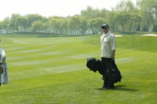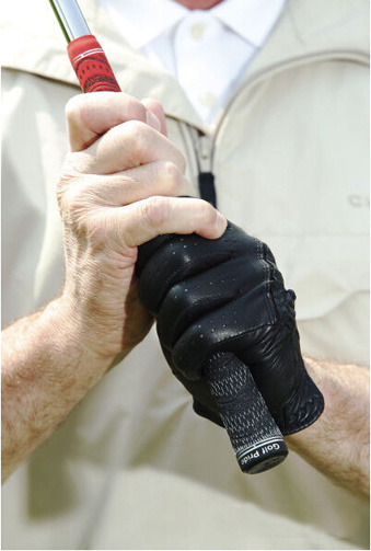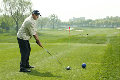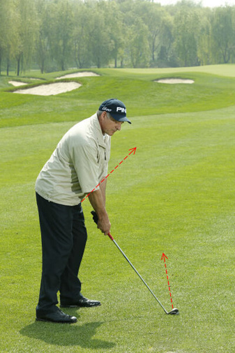 图1:当你逆风打球时,选择一根杆身较长、倾角较少的球杆,握杆时握短一点 。