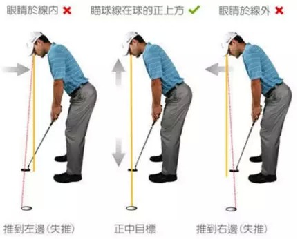 2、瞄准没做好:造成用杆头跟部或趾部打球、挥杆向内或向外、杆面角度太开或太关闭。多数的球员自以为做好推杆的瞄准了,事实不然。