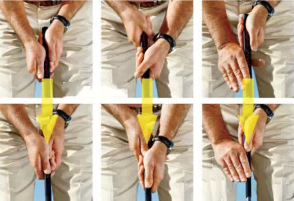 •两掌一起握杆时,球杆就像是双手臂的延伸。
