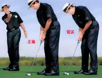 •右手肘自然靠着身体,加速手臂、肩膀以及推杆通过击球区时,保持头部及身体完全静不动。