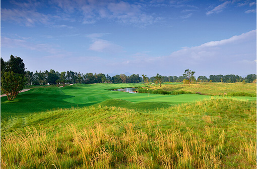 米克尔森并非是一位高产的球场设计师,但这并不能掩盖其与众不同的设计理念和大胆的创新举措。锦标赛球场的11号洞,老米勇敢地在270码的距离摆下三杆洞,面对这样的挑战,让绝大多数球友只能用一号木迎战。此种难度,在国内并不多见。