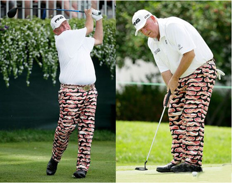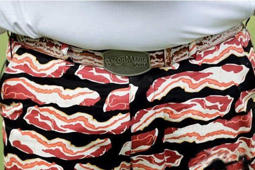 说起“花裤子”这个梗,你永远想起的第一人会是约翰-达利。但这一次,即将满55岁的马克-卡卡维查(Mark Calcavecchia)也加入了这个“前英国公开赛冠军哪些会穿花裤子”的行列中。不过,他的裤子上则是画满了培根肉——似乎也是略胜一筹...