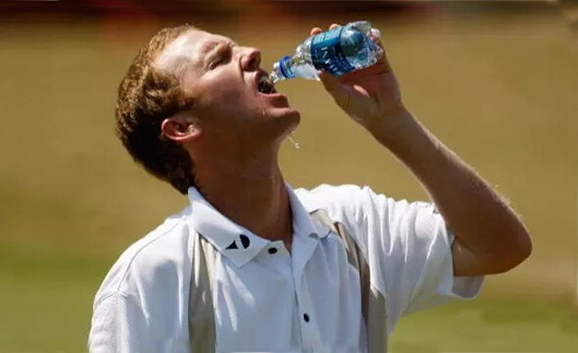 很多球友喜欢在炎热口渴时将手中的水一饮而尽,或者在短时间内大量饮水,不建议你这么做。