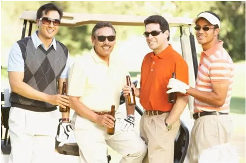 有的球友在打球过程中会拿啤酒解渴。从某种意义说,啤酒是镇静剂、利尿剂,并造成身体失衡。还是等打完球再喝吧。