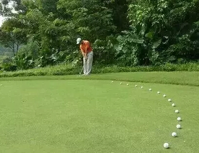 以洞为圆心,画一个半径为两码的圈(或者用Tee来标识)。分别在20码,30码,40码的地方,分别打5个球进圈里。