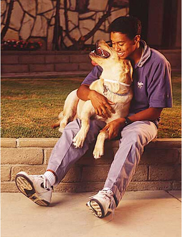 18岁时泰格-伍兹与自己的宠物狗