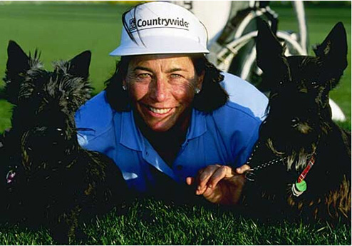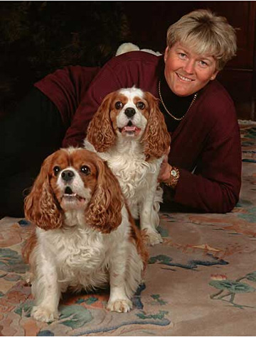 名人堂成员朱莉-英科斯特与自己的两只小狗