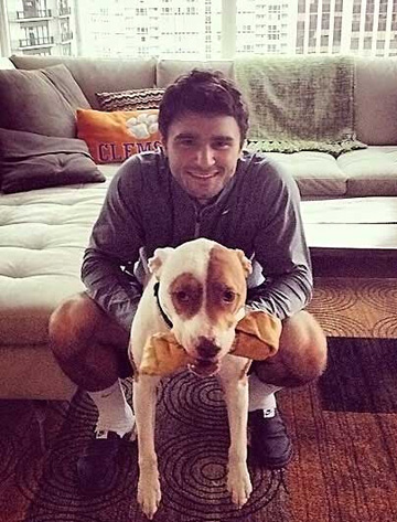 达斯汀-约翰逊与自己的宠物狗