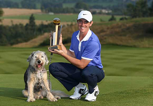 罗里-麦克罗伊、沃兹尼亚奇与他们的宠物狗布鲁诺