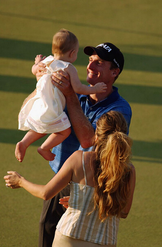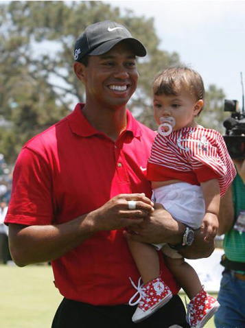2008年,伍兹加洞赢得美国公开赛,开心地抱着女儿