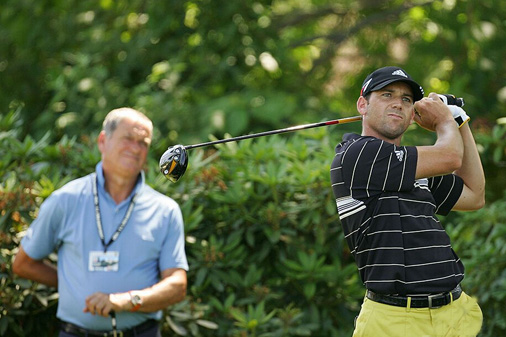 2007年,美国公开赛练习轮,加西亚练球,父亲默默守护