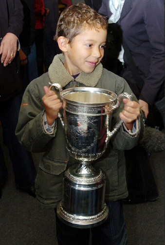 2005年,美国公开赛冠军迈克尔-坎贝尔的儿子骄傲地捧着奖杯