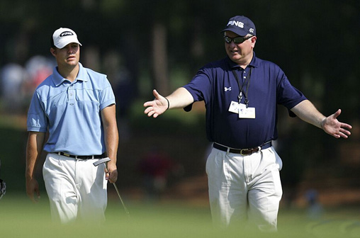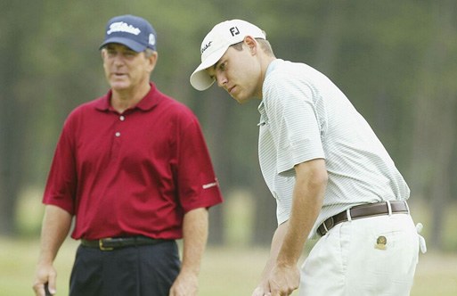 2004年,美国公开赛练习轮,比尔-哈斯推击,父亲一旁观