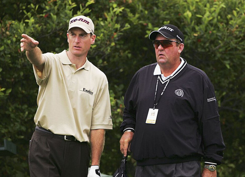 2004年美国公开赛练习轮,吉姆-福瑞克开球后与父亲谈论