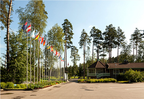 会所前迎风招展的50个国家的国旗是莫斯科乡村俱乐部给人的第一印象