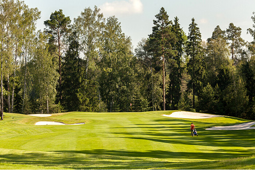 树是每一洞的特色,想遇到哪怕一条球道是大大方方、不被高大的寒带植物干扰的?在这座球场不可能。和奥古斯塔球场一样,在莫斯科乡村俱乐部的众多树下也有一整片柔软的松针和冷杉果铺就的植被层。但是千万别认为能够避开树木、直攻果岭,聪明的球友通常选择先用短杆打到球道上,缓攻果岭。几乎每个球道两侧的长草都又厚又粗,尽管这样可以保证容易停球,但一旦进了长草可要费一番体力才能切出来,这个时候就不要太过追求距离了。狗腿洞也是这座球场的标志。整座球场至少有8个洞会给你大炮攻上果岭的假象,而实际上无处不在的树林、长草和水障碍会让你折戟而返。