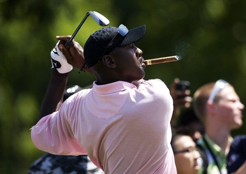 从迈克尔-乔丹到比尔-克林顿,名人们一直在吞云吐雾,享受着各种各样的烟草:贵的和便宜的,古巴的和洪都拉斯的,粗的细的。现在我们仍能在许多比赛上看到雪茄和球手亲密相伴的身影。西班牙老将西门尼斯被公认为最有品位的高尔夫球手,除了球杆以外,他最离不开的便是红酒和雪茄,他甚至在球道上也总是叼着雪茄走来走去,在果岭守候的球迷也习惯了人未到烟味儿先飘来的感觉,所以西门尼斯在球场上被称为“雪茄王”。