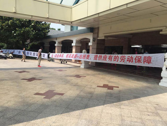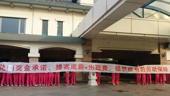 golf365网站记者听闻此事赶往现场。在现场,眼见汤臣球会已经拉起了“兑现奖金承诺、提高底薪+出班费、提供应有的劳动保障”长长的横幅,球会大门被横幅所拦,近百名球童穿戴整齐在大门口席地而坐。球场的球童以及球场其他工作人员因为薪酬问题正在举行罢工,不再为前来打球的客人提供下场及拖包的服务,球场无法正常运营。据golf365网站记者了解,原来球场在近年间,由于管理层克扣员工薪酬,年前的奖金和赛事奖励也未能如承诺发放,还计划减少球童费,直接导致此次罢工的进行。球童表示,他们希望通过这样的行动,能够引起汤臣集团的关注,并兑现承诺、更换现有管理层。