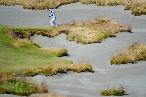 美国公开赛即将正式开演,除了一些在这里参加过美国业余锦标赛的选手,绝大多数选手都没有见识过这座球场。至于世界上绝大多数的球迷,更不可能知道。来看看现实版的钱伯斯湾狂野气势: