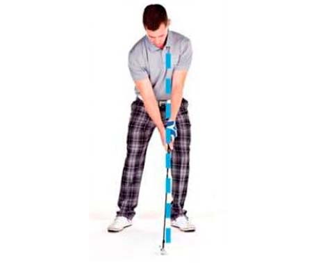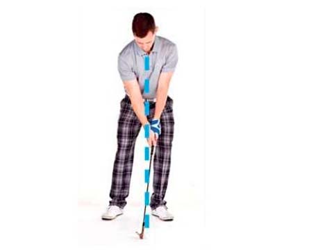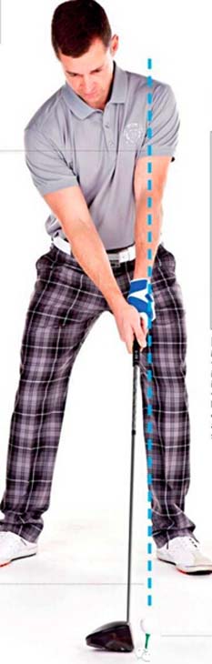 朝着目标方向移动你的右脚(几英寸),让球位处于你下颌的正下方,这样更容易打出直上直下的挥杆。