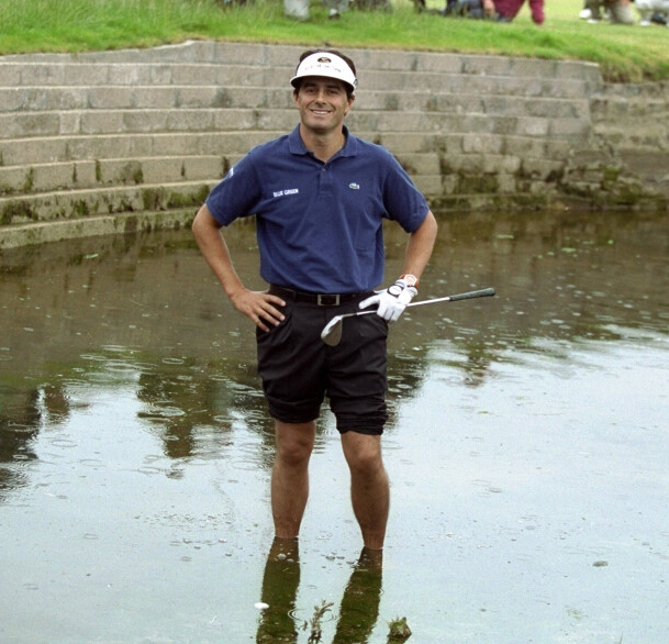 一、恐怕是高尔夫历史上最著名的崩盘:1999年英国公开赛,卡诺斯蒂,法国人范德维德带着三杆领先进入最后一洞,然而他却先将球开进障碍区,接着又用铁杆把球打进了小溪,只能挽起裤管站进水里试图将球切出,接受罚杆后又进了沙坑,最终吞下不可思议的三柏忌,被拖入延长赛后不敌保罗-劳列。