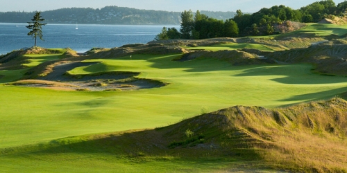 钱伯斯湾的果岭起伏太大,很多2段式,3段式,甚至有大斜坡的果岭。