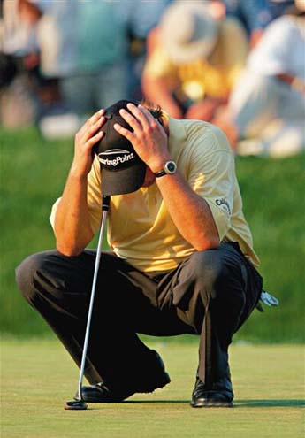 今年美国公开赛最后一轮,钱伯斯湾的第18洞,美国球手达斯汀·约翰逊本来拥有12英尺的老鹰推机会。如果推进,他就能获得自己的大满贯首胜;如果两推抓鸟,他还有机会和斯皮思进行18洞的延长赛。可命运弄人,迎接约翰逊的是3推保帕,最终痛失冠军。