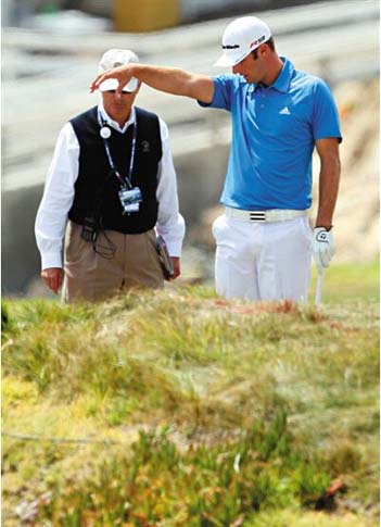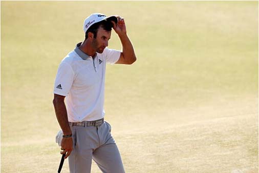 今年的美国公开赛并不是达斯汀·约翰逊第一次饮恨大满贯赛。2010年的美国公开赛在圆石滩举办,约翰逊在第3轮打出66杆,以3杆优势进入最后一轮。但在最后一轮第1洞的标准杆过后,约翰逊迎来了挣扎的一轮比赛,第2洞三柏忌,第3洞遗失球……最终以82杆的糟糕成绩收场。同组的北爱尔兰球手格莱姆·麦克道维尔虽然也打出了不太理想的74杆,却足够将冠军收入囊中。