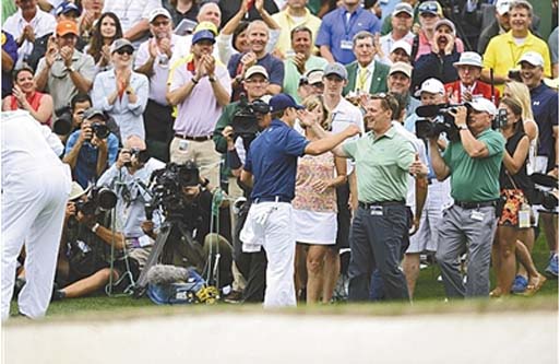 当达斯汀·约翰逊在18洞上3推错失冠军后,他失望地走向记分处。直到抱起自己儿子时,他脸上才露出难得的笑容。“这是我的奖杯。”约翰逊说。这正是对这位悲情英雄的最大安慰。