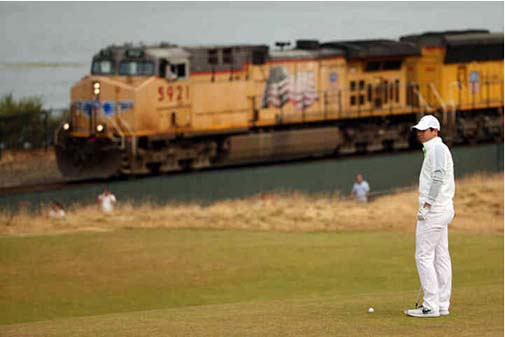 首轮第16洞果岭,对于火车的干扰,小麦毫不介意