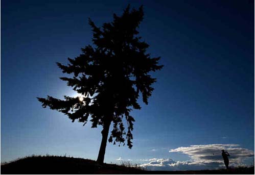亚当·斯科特在第二轮第16洞开球,旁边是钱伯斯唯一的一株成年大树
