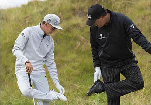 周二练习轮,里奇·福勒和菲尔·米克尔森清理鞋子