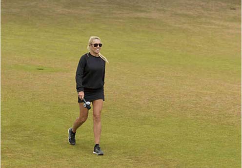 首轮,福克斯体育台特约记者娜塔莉·古尔比斯走在第18洞球道上