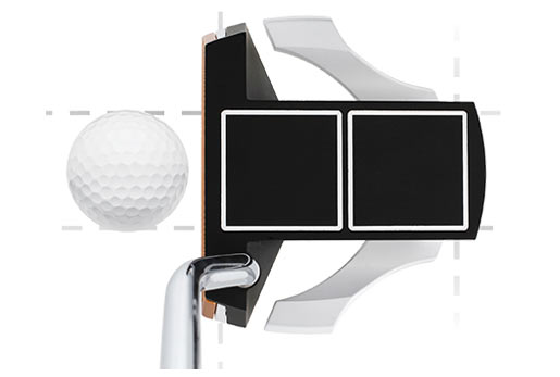 Dual Axis瞄准设计重新回归,两个正方形构成两条平行的瞄准线位于推杆顶部,由此带来完美的瞄球体验,同四条垂直于目标的直线能在瞄球时及时矫正偏差。