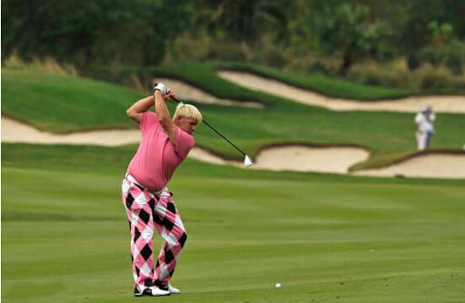 先看看“大炮手”约翰·达利的辉煌历史吧!每天走18洞,他最重时的体重仍有136.4公斤。胖人大多怕热,达利经常光着膀子光着脚丫,叼根烟出场比赛,虽然高尔夫的“优雅”跟他根本联系不到一块儿去,但他不拘小节的举动却赢得不少拥趸的支持,特别是胖人的喜爱。因为赛场上的达利打球很灵活,身体的臃肿丝毫没有影响到他球技的发挥。