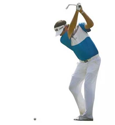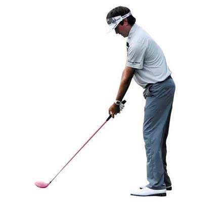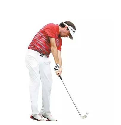 漂亮的预备姿势。如果右髋稍微向前(目标方向)移动,左膝稍微向内侧转动,并减少双肩的紧张感。他的身体预备姿势需要少量的“神经系统介入”。然而沃森的左手握杆转动至握把的下方,这需要显著的“神经系统介入”去调整每次挥杆。