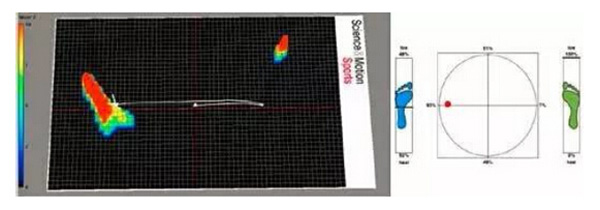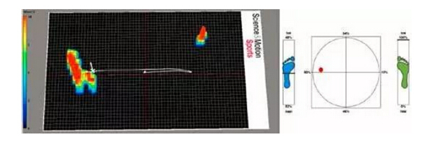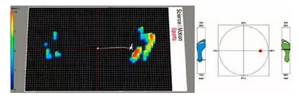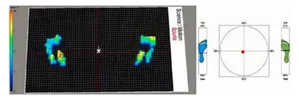 收杆:挥杆动作结束时,压力开始向脚后跟移动,白点最终离开了两脚中心的连线,形成了貌似鱼钩的一个形状。研究证明这种线性压力模式有助于产生更为平衡的运动,会促进球杆与球的密切配合,从而得到希望的扎实击球,实现铁杆精准击球的目标(见上图)。